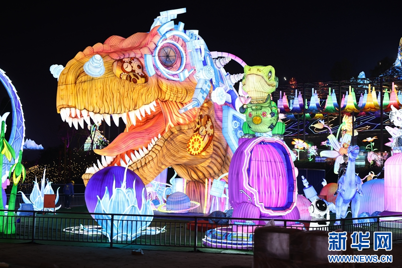 圖為1月13日拍攝的《智慧恐龍》燈組。新華網(wǎng)發(fā)(曹鵬 攝)