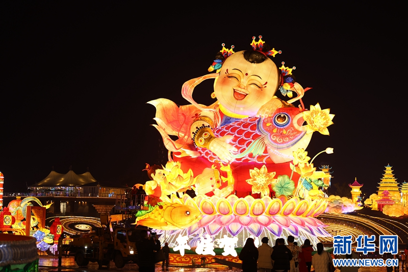 圖為1月13日拍攝的《年娃賀歲》燈組。新華網(wǎng)發(fā)(曹鵬 攝)