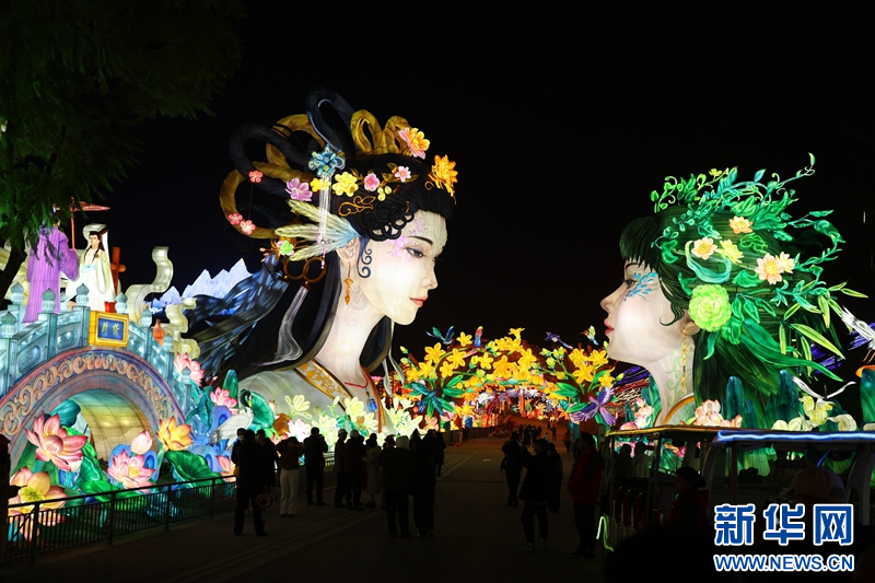 圖為1月13日拍攝的《青城雙姝》燈組。新華網(wǎng)發(fā)(曹鵬 攝)