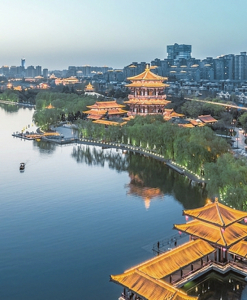 從大雁塔到大唐芙蓉園和大唐不夜城步行10分鐘—15分鐘,可以根據(jù)自己的興趣選擇。兩處都是夜游好去處,十分熱鬧。大唐芙蓉園是我國(guó)第一個(gè)全方位展示盛唐風(fēng)貌的大型皇家園林式文化主題公園,紫云樓、仕女館、杏園、芳林苑等仿古建筑,讓人感覺仿佛穿越到了唐朝,身邊穿唐裝游園的游客不少,景與人,都美得好似“世外桃源”,拍照打卡的游客,忙得不亦樂乎。如果想要體驗(yàn)更多煙火氣,那大唐不夜城的三步一景、五步一鬧無疑是最合適的選擇。每到黃昏,四面八方的人流便向大唐不夜城匯聚,大家一般乘坐地鐵而來,從地鐵大雁塔站東南口出站,從北往南參觀。看完大雁塔北廣場(chǎng)的音樂噴泉表演,繼續(xù)往前800米,就是大唐不夜城步行街北入口,經(jīng)過古詩(shī)詞街時(shí),一步一詩(shī)詞,成為獨(dú)屬于長(zhǎng)安的浪漫。