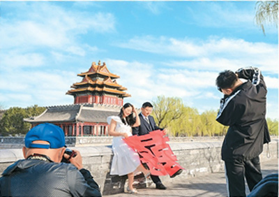 “今年訂單量明顯上升,其中不少咨詢檔期的客人是外地的。”在北京從事領(lǐng)證跟拍、婚禮紀(jì)實拍攝的獨立攝影師劉璐璐告訴記者,西城區(qū)等婚姻登記處由于毗鄰故宮、景山公園等文旅地標(biāo),相對更加“出片”,受到新人們的青睞,“有一對廣東來的情侶領(lǐng)完證后開玩笑說,他們是來北京旅游的,順便結(jié)了個婚?!眲㈣磋凑f。
