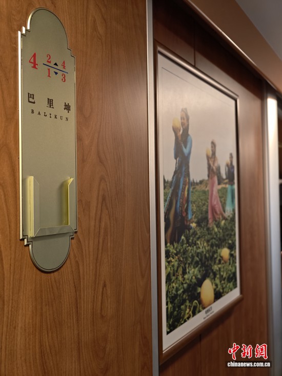 穿行在車廂中間,處處可見新疆的濃濃風(fēng)情。秉持“一車一風(fēng)景”的理念,車廂內(nèi)每個房間均以新疆知名景區(qū)命名,房間門口還張貼著對應(yīng)景點(diǎn)的美食美景海報(bào),讓游客未至景區(qū),先浸風(fēng)情。