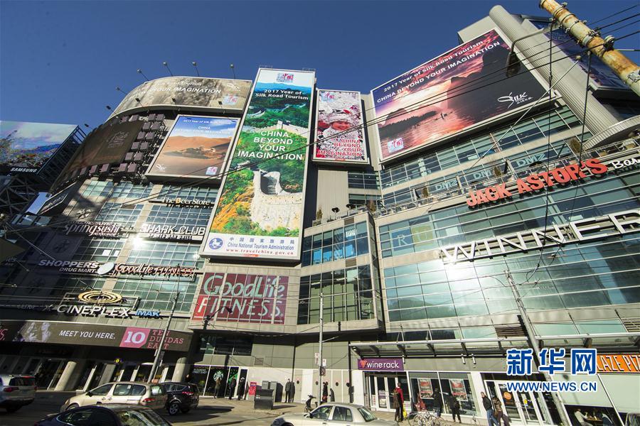 這是1月1日在加拿大多倫多市中心的鄧達斯廣場拍攝的“美麗中國——2017絲綢之路旅游年”主題宣傳廣告牌。從2016年12月26日起,由中國國家旅游局推出、以“美麗中國——2017絲綢之路旅游年”為主題的大型旅游宣傳廣告在加拿大多倫多市中心鄧達斯廣場亮相,向人們展示中國美麗而豐富的旅游資源。整個活動將持續(xù)5周。新華社發(fā)(鄒崢攝)