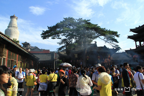 五爺廟也稱萬佛閣座落于臺懷鎮(zhèn),與大白塔相毗鄰,是通往顯通寺的又一條路徑。寺廟地勢開闊,當(dāng)年是大清歷代皇帝朝臺寢宴的行宮,俗稱“皇城”?!盎食恰敝寥f佛閣之間,終年涌動著接踵而至的羲圣觀光者。