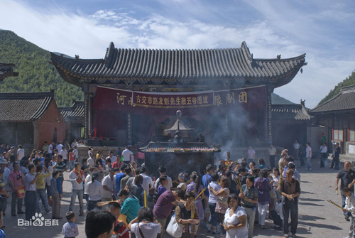 五爺廟里殿內(nèi)供奉的五爺是廣濟(jì)龍王文殊菩薩的尊稱,也是五臺山五頂文殊菩薩的化身,因而,這里是整個五臺山香火最盛的寺廟。而事實上,應(yīng)該說五爺其實就是文殊菩薩在臺懷本土化,世俗化的產(chǎn)物,它承擔(dān)起了民間俗神的職能,寄托著當(dāng)?shù)匕傩掌砼物L(fēng)調(diào)雨順、平安吉祥的愿望。也許正是因為五爺比起其他各大寺院里莊嚴(yán)肅穆的菩薩們更親近群眾,更符合急功近利的眾生心愿的緣故吧,小小的五爺廟,在善男信女們的心目中,它幾乎成了有求必應(yīng)的象征,上五臺山燒香的人大部分都是沖著五爺廟去的。在群眾心目中,他們不懂什么佛理,甚至不知道文殊菩薩,但只要一說五爺廟,則遠(yuǎn)近聞名,幾乎成了五臺山的一張名片。
