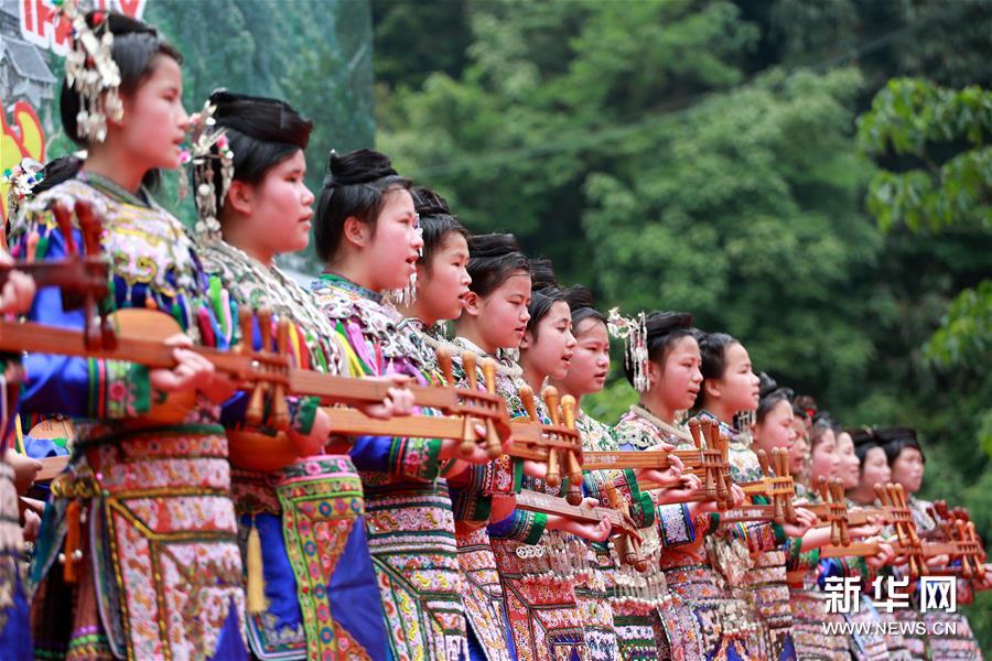 5月3日,貴州省首批魅力侗寨——榕江縣烏公侗寨歡度傳統(tǒng)的竹米節(jié),重溫侗民遠(yuǎn)古農(nóng)耕風(fēng)情。竹米節(jié)也叫吃竹筍飯,在每年谷雨至立夏期間竹筍生長的時候,侗族群眾采摘斑竹筍,把糯米灌進(jìn)筍筒煮熟食用。這樣既能保持米飯的原味,又有竹筍的清香,并且還方便攜帶至坡上田間地頭食用。久而久之,侗族人每到春夏之交的農(nóng)耕時節(jié)都會過竹米節(jié),殺豬宰羊祭祀侗族祖先,唱歌跳舞祈求五谷豐登。新華社發(fā)(楊成利 攝)
