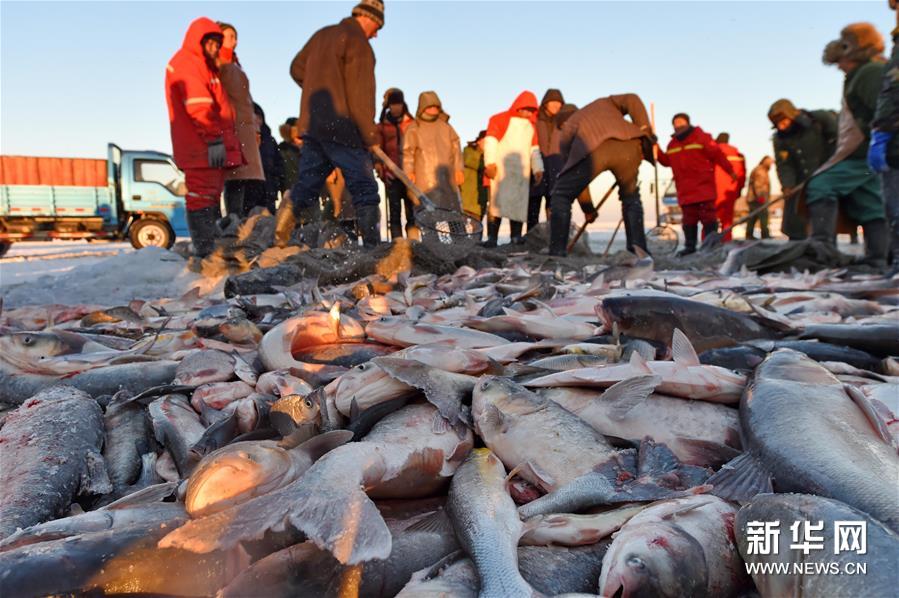 數(shù)九寒天,每天有近兩百名漁民聚集在吉林省松原市冰封的查干湖湖面上,他們沿用原始的捕魚方式,傳承著近千年的漁獵技藝。憑借獨(dú)特且原汁原味的漁獵技藝,每年查干湖冬捕都吸引眾多游客前來(lái)“探秘”,也為當(dāng)?shù)貪O民帶來(lái)可觀的收入。近年電商的加入更為這一產(chǎn)業(yè)錦上添花。據(jù)了解,今年冬捕節(jié)期間查干湖計(jì)劃捕魚260萬(wàn)斤,可實(shí)現(xiàn)產(chǎn)值3000萬(wàn)元,其中一半以上的魚都是從漁網(wǎng)“游”向互聯(lián)網(wǎng),“游”到全國(guó)各地百姓的餐桌上。新華社記者 張楠 攝