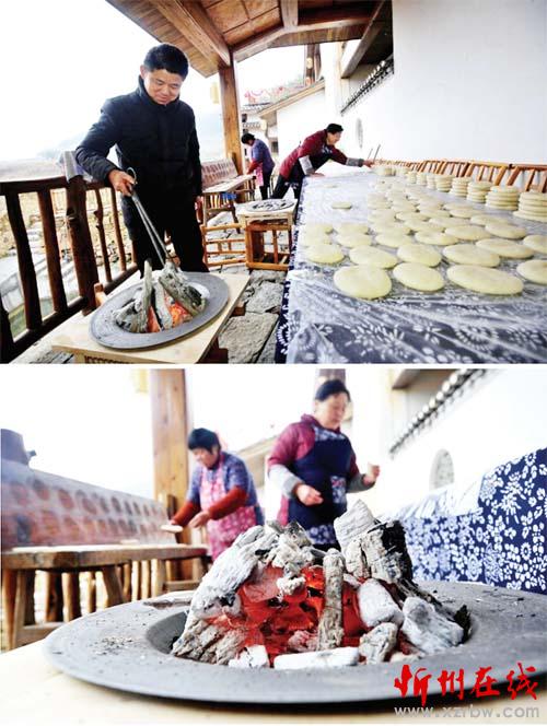 12月13日,在湖南張家界市武陵源區(qū)協(xié)合鄉(xiāng)一民宿,人們在火盆旁做糍粑(拼版照片)。近日,我國南方地區(qū)氣溫驟降。在湖南各地,人們拿出家中的傳統(tǒng)取暖工具抵御寒冷。一件件充滿民間智慧的取暖“神器”,喚起了不少人的童年記憶。家人、朋友圍坐在一起,暖意濃濃、其樂融融。