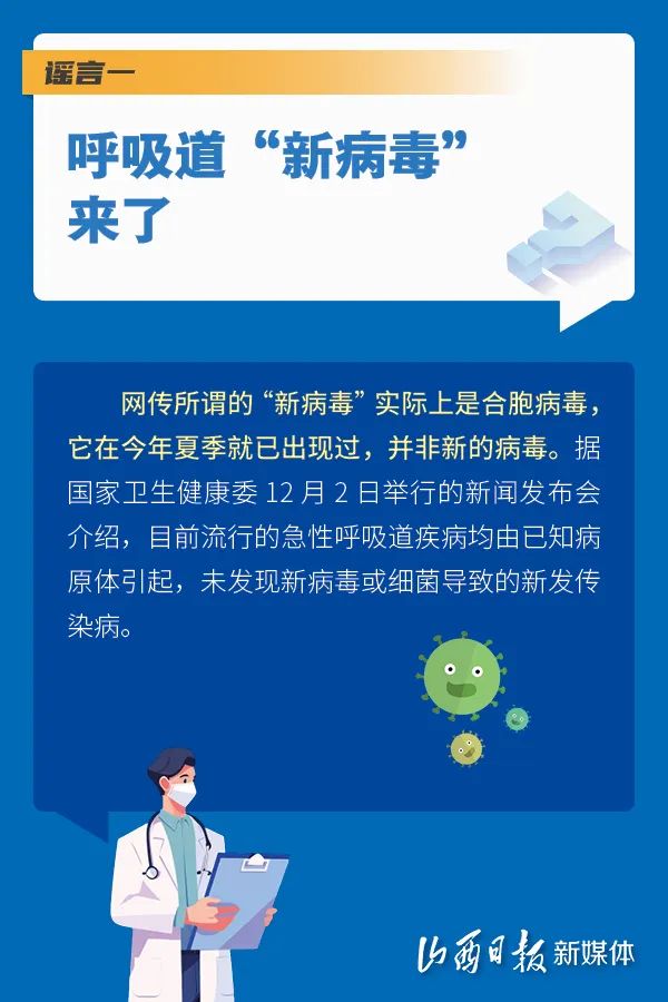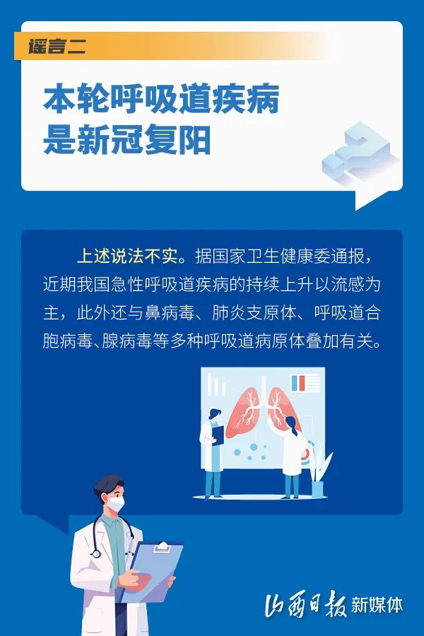 近期,呼吸道疾病呈現(xiàn)高發(fā)態(tài)勢。個別不實信息趁機傳播擴散,誤導公眾認知。特此澄清關(guān)于呼吸道疾病的5個謠言,幫助大家知曉呼吸道疾病的基本常識,做好健康監(jiān)測及預防措施。閱讀、收藏、轉(zhuǎn)發(fā)吧!