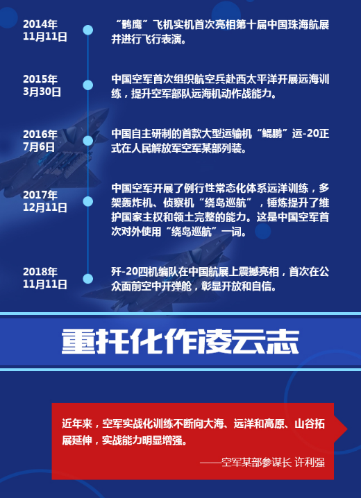 搏擊長空心向黨、飛行萬里不迷航。近年來空軍警巡東海、戰(zhàn)巡南海、前出西太、繞島巡航,飛了過去沒有飛過的航線,到了過去沒有到過的區(qū)域,提升了海上方向實戰(zhàn)能力,推進了作戰(zhàn)指揮能力建設。走在中國特色強軍之路上的中國空軍,在維護新時代空天安全中書寫新的答卷。