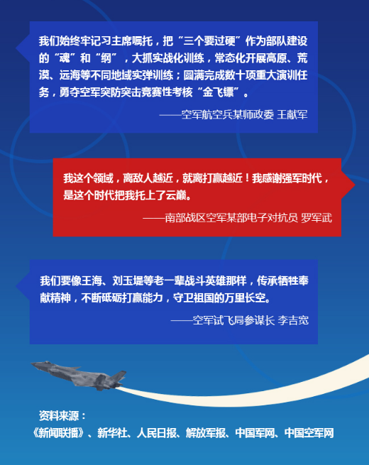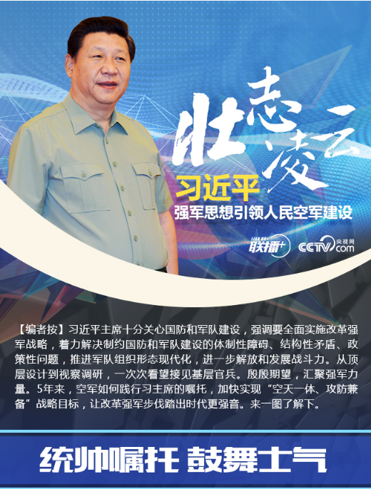 【聯(lián)播+】5年前的4月14日,中共中央總書記、國家主席、中央軍委主席習近平專程到空軍機關調研空軍建設和軍事斗爭準備,代表黨中央、中央軍委向空軍全體官兵致以誠摯的問候,強調要加快建設一支空天一體、攻防兼?zhèn)涞膹姶笕嗣窨哲姡瑸閷崿F(xiàn)中國夢、強軍夢提供堅強力量支撐。