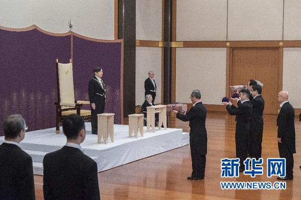 當(dāng)?shù)貢r(shí)間1日上午10時(shí)30分,天皇德仁在皇居“松之間”宮殿舉行即位后第一項(xiàng)儀式“劍璽等繼承之儀”,正式繼承象征皇位的三種神器以及國印和天皇御璽等。這一儀式持續(xù)大約5分鐘,僅有皇室成年男子和日本首相安倍晉三及內(nèi)閣成員等少數(shù)人參加。