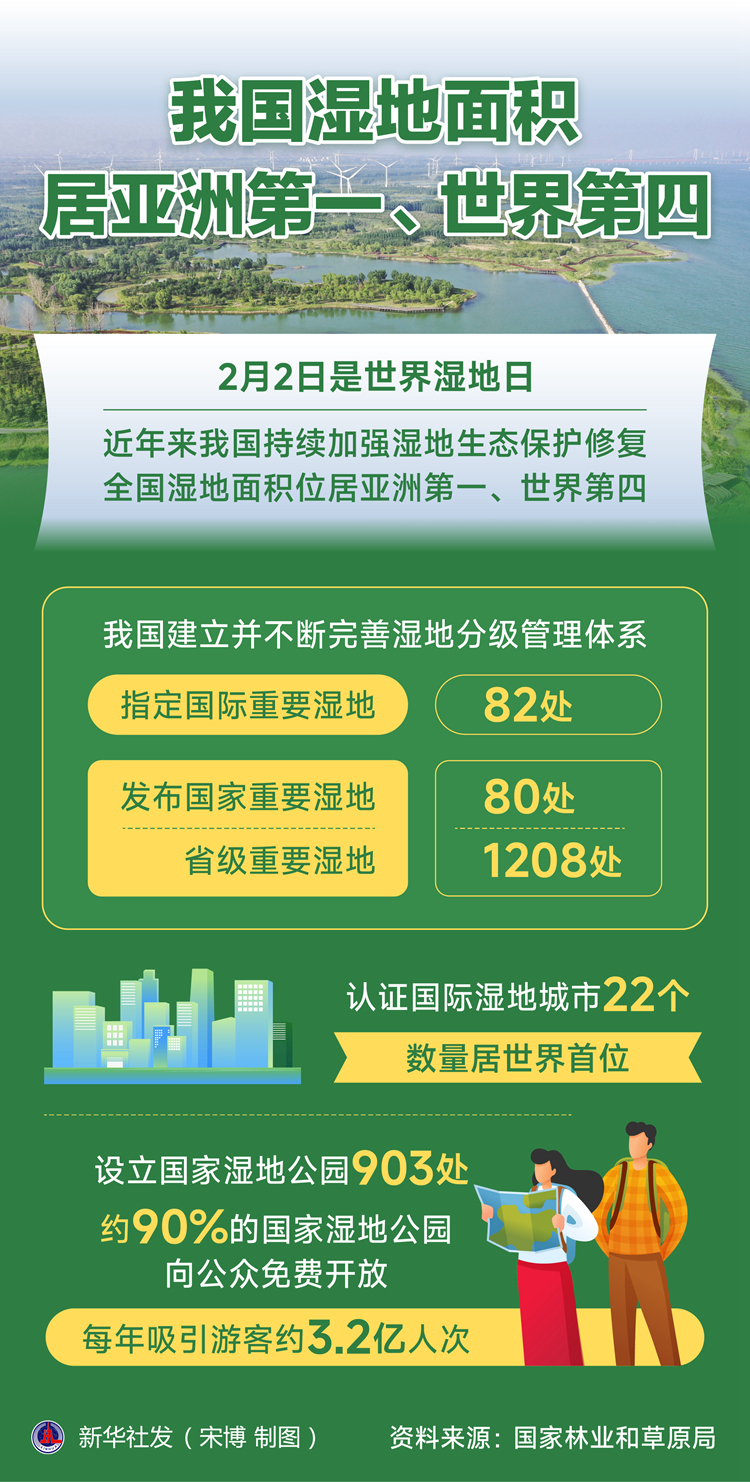 新華社北京2月2日電(記者黃垚)2月2日是世界濕地日。記者當(dāng)天從國家林業(yè)和草原局獲悉,近年來我國持續(xù)加強(qiáng)濕地生態(tài)保護(hù)修復(fù),全國濕地面積位居亞洲第一、世界第四,濕地保護(hù)形成重點(diǎn)治理和分類保護(hù)相結(jié)合的新格局。