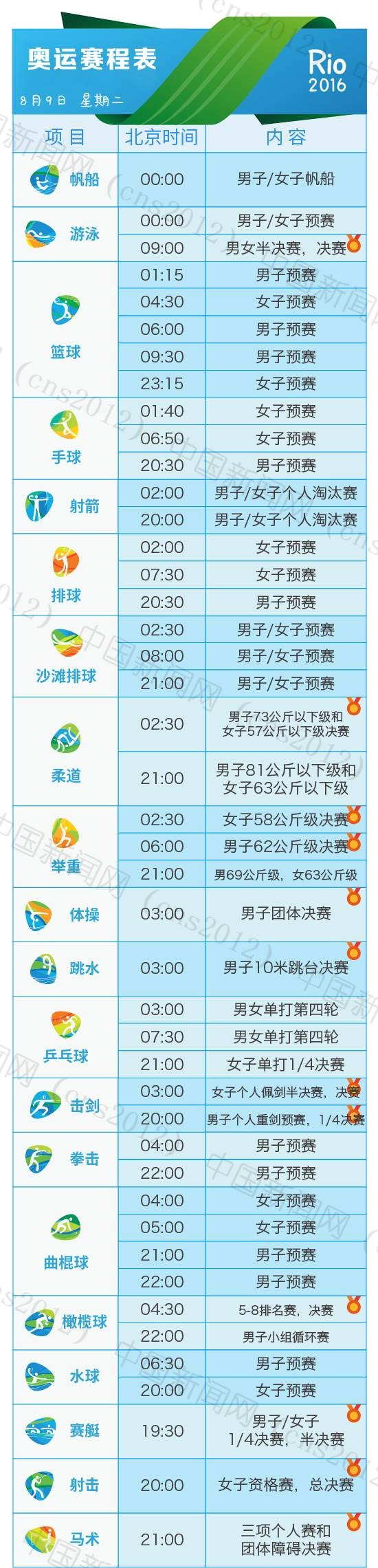 里約奧運會完整賽程表