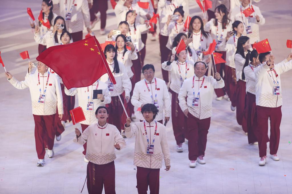 1月13日,中國大學(xué)生體育代表團(tuán)在開幕式上入場(chǎng)。新華社記者 李京 攝