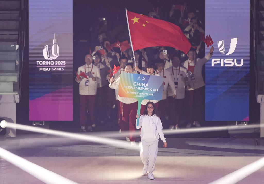 賽會(huì)開幕式于當(dāng)晚在都靈奧林匹克體育館舉行。入場(chǎng)儀式上,來自北京體育大學(xué)的女子冰壺運(yùn)動(dòng)員裴君杭和北方工業(yè)大學(xué)的男子高山滑雪運(yùn)動(dòng)員劉祥琪共同擔(dān)任中國代表團(tuán)旗手。