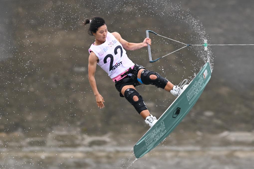 8月10日,中國選手徐露在2025年成都世運會女子尾波滑水自由式?jīng)Q賽中。新華社記者 陳振海 攝