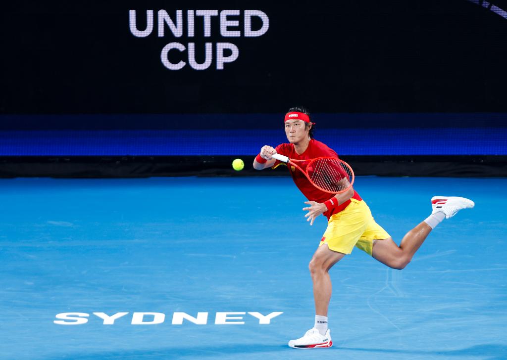 1月4日,中國隊(duì)選手張之臻在男子單打比賽中回球。新華社記者 馬平 攝