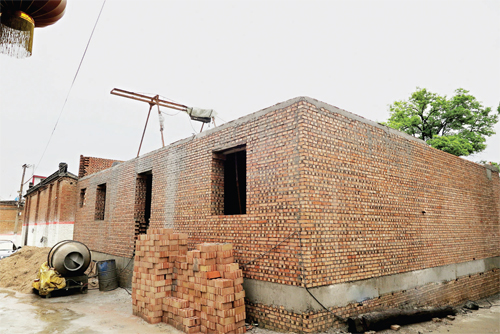 7月20日上午,記者驅(qū)車來(lái)到忻府區(qū)解原鄉(xiāng)北趙村。在一個(gè)緊鄰村委會(huì)北側(cè)的逼仄巷子里,記者見到了這棟已經(jīng)停工的紅磚房。一層和地下室主體已經(jīng)建成,修葺齊整的墻面與周圍的土階茅屋形成了鮮明的對(duì)比,沙子、攪拌機(jī)堆放在旁邊,讓本就不寬敞的巷子顯得更加擁擠不堪。
