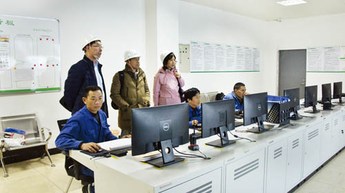 圖為梁文閣(后排中)與本報記者在浙江迪森國大清潔能源有限公司