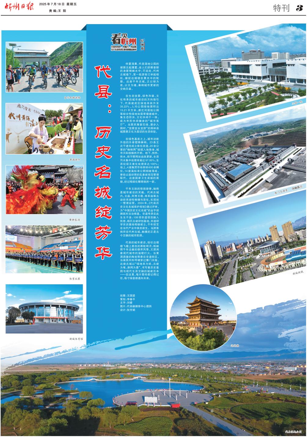 代縣的城市建設(shè),恰似邊靖樓飛檐上懸掛的那輪明月:既映照千年邊塞的雄渾風(fēng)骨,又浸潤(rùn)著現(xiàn)代城市的溫暖燈火。當(dāng)黃酒酒堡的陶甕飄香在非遺街區(qū),當(dāng)高鐵列車呼嘯穿過(guò)雁門關(guān)隘,這座古城以“綠地率為紙、古建為筆、路網(wǎng)為墨”,書(shū)寫著歷史基因與現(xiàn)代生活交融的城建范本——在這里,每片青磚都記得過(guò)往,每寸綠意都通向未來(lái)。