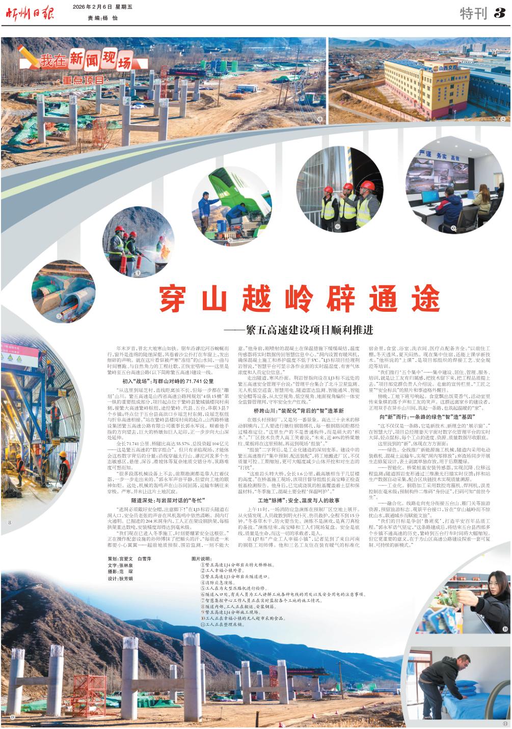 年末歲首,晉北大地寒山如鐵。驅(qū)車沿滹沱河谷蜿蜒而行,窗外是連綿的陡崖深壑,風(fēng)卷著沙塵撲打在車窗上,發(fā)出細(xì)碎的聲響。就在這片看似被嚴(yán)寒“凍結(jié)”的山水間,一曲與時(shí)間賽跑、與自然角力的工程壯歌,正恢宏唱響——這里是繁峙至五臺(tái)高速公路(以下簡稱繁五高速)建設(shè)一線。