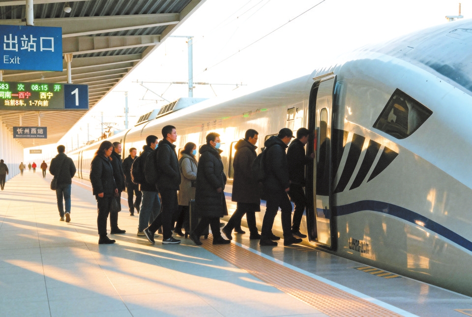 忻州西站旅客正抓緊時(shí)間乘車(chē)