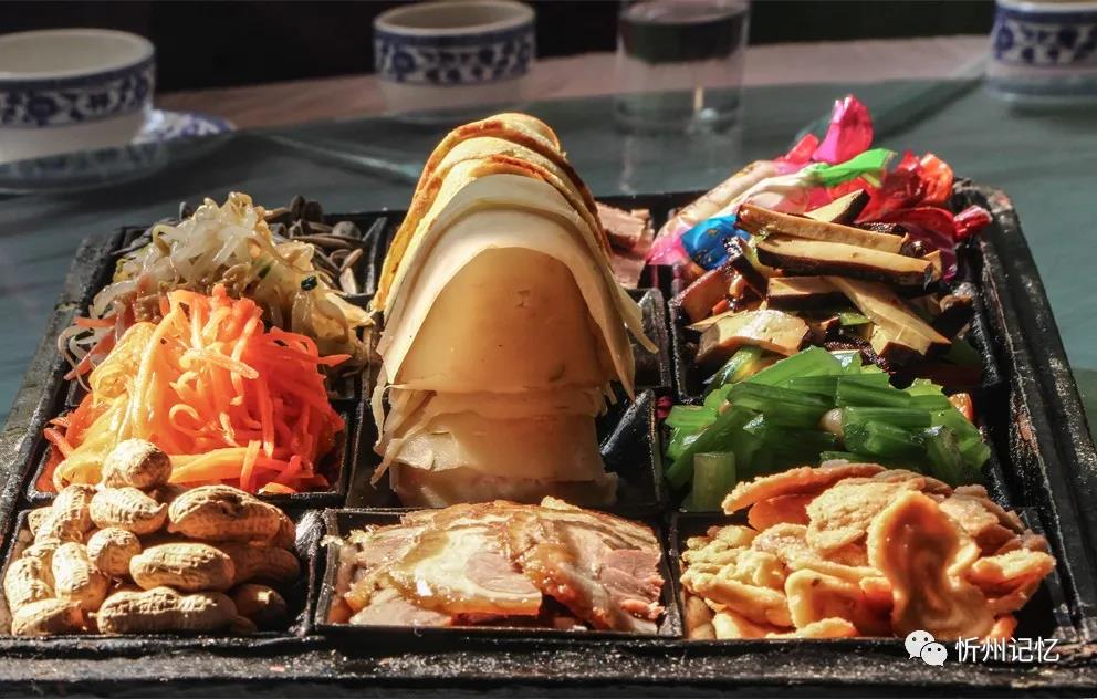 水菜盒子,是一個(gè)木制的長(zhǎng)方形盒子,長(zhǎng)約40多厘米,寬約20多厘米,高約10多厘米。木盒分蓋子和底座,底色多漆為紅黑兩色。蓋子上有的還畫有人物、山水、花卉等圖案,為描金漆處理。底座內(nèi)有12個(gè)木制的小長(zhǎng)方形碟子,以3行4列的形式排列,用來(lái)裝涼拌菜。傳統(tǒng)的涼拌菜為四葷、二素、六干果,但后來(lái)大多演變?yōu)樗娜?、四素、四干果。其中的“四葷”為雞蛋餅、冷片肉、蒸肉、鹵肉;“四素”幾乎全是清淡的蔬菜,如綠豆芽、胡蘿卜、土豆絲、菠菜、胡芹等;“六干果”分別是葵花子、水果糖、南瓜子、油蛋蛋、金銀棗、蝦片。在忻府區(qū),過(guò)去家家戶戶但凡婚喪嫁娶,總要上水菜盒子,這就是老忻州人好說(shuō)的“八八六六”。其中“八八”即水菜盒子(除去里面的干果正好8小碟菜),代表涼菜。 (責(zé)任編輯:梁艷) |