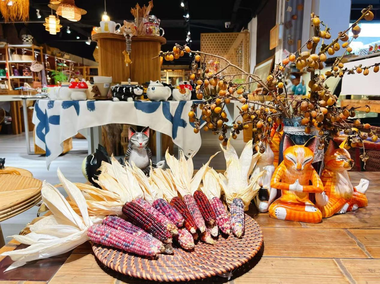 經(jīng)自然晾曬、人工精選、手工創(chuàng)意后,高顏值的玉米迎來了“七十二變”:配上木質(zhì)底座成為文玩擺件,單粒打孔輔以云南銀飾變成手鏈、鑰匙扣,掛飾、裝飾畫等。