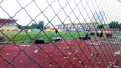 6月18日晚,市體育場在舉辦完一場音樂盛會后,現(xiàn)場一片狼藉,垃圾滿地。臟亂的場面給工作人員帶來很大工作量,希望市民還是要多愛護公共場所環(huán)境衛(wèi)生。(網(wǎng)友:藍(lán)天碧水 攝)