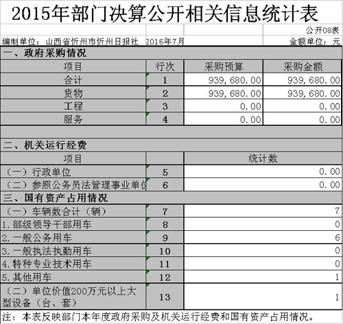 忻州日?qǐng)?bào)社2015年度部門決算