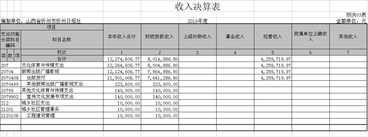 忻州日報社2016年度部門決算