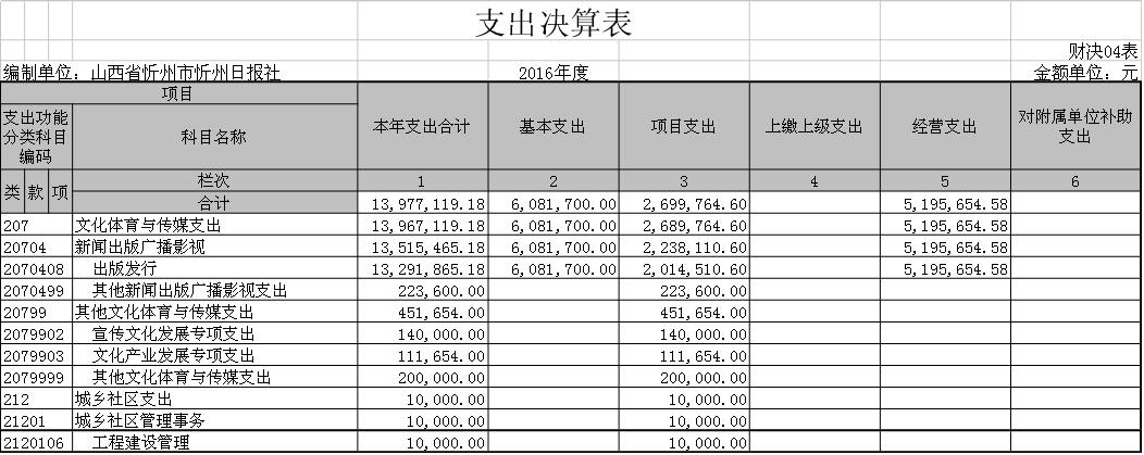 忻州日?qǐng)?bào)社2016年度部門(mén)決算