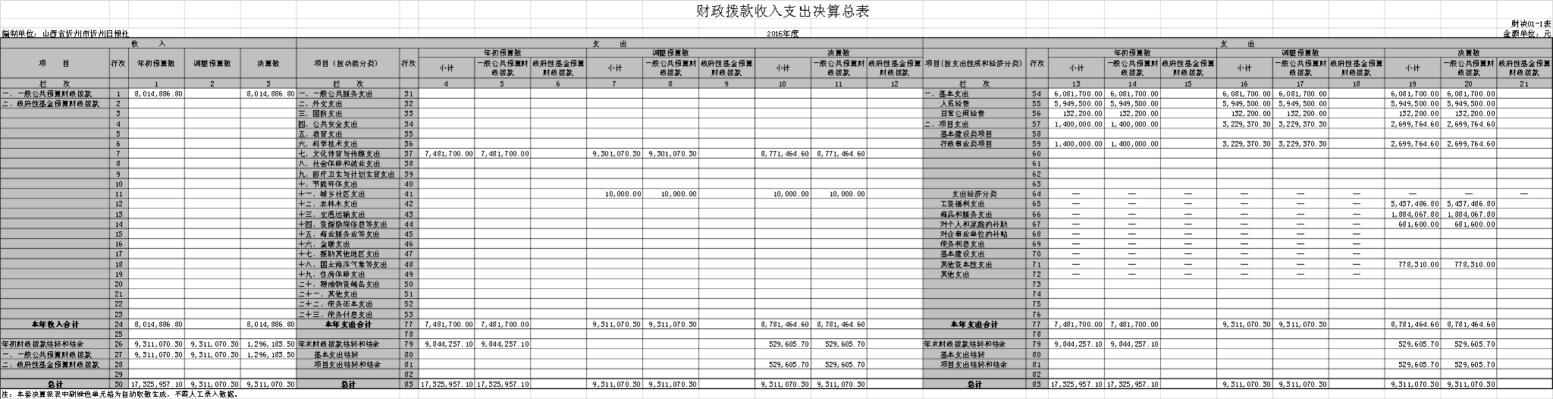 財(cái)政撥款收入支出決算總表