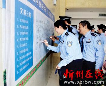 本報(bào)訊 為進(jìn)一步提升廣大民警、輔警創(chuàng)建文明城市的意識(shí),近日忻府區(qū)公安局組織開(kāi)展了以“倡導(dǎo)綠色生活、反對(duì)鋪張浪費(fèi)、爭(zhēng)創(chuàng)文明城市”為主題的簽名承諾活動(dòng),局領(lǐng)導(dǎo)和全局民警、輔警參加了活動(dòng),鄭重地在簽名墻簽上姓名,紛紛表示要以此次活動(dòng)為契機(jī),從自身做起,將社會(huì)主義核心價(jià)值觀融入日常工作中,自覺(jué)踐行文明公約,積極參加志愿者活動(dòng),爭(zhēng)當(dāng)創(chuàng)建文明城市的先鋒,積極為創(chuàng)建文明城市貢獻(xiàn)力量。