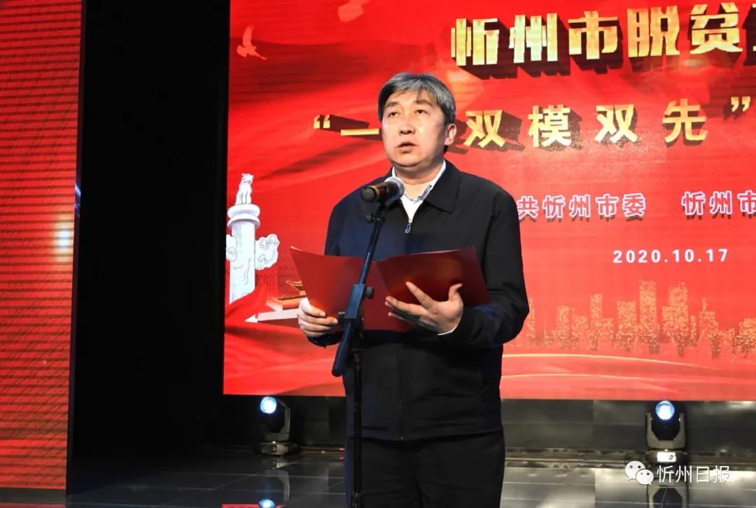秦書義宣讀《中共忻州市委忻州市人民政府〈關(guān)于表彰2020年忻州市脫貧攻堅“一獎雙模雙先”的決定〉》。劉紀(jì)森攝
