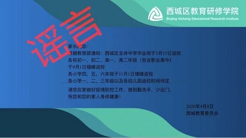 近日,“北京高三4月27日開(kāi)學(xué),六年級(jí)和初三5月11日開(kāi)學(xué)” 、“西城區(qū)全體中學(xué)畢業(yè)班5月15日返校”、“北京某區(qū)教委接到通知,確認(rèn)9月1日前不會(huì)復(fù)學(xué)”等一系列消息在網(wǎng)上流傳。