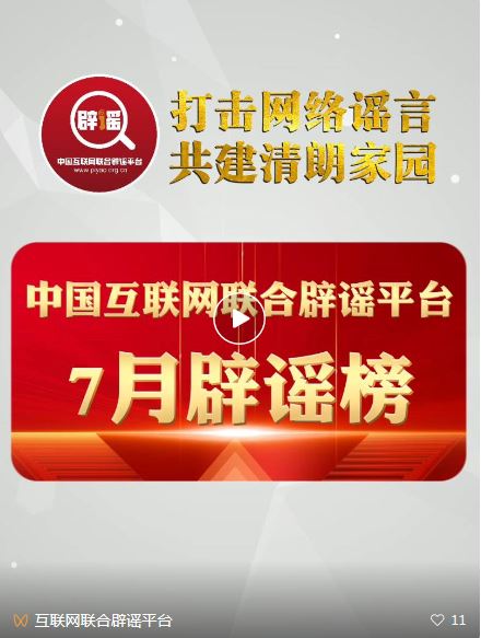 打擊網(wǎng)絡(luò)謠言 共建清朗家園 中國互聯(lián)網(wǎng)聯(lián)合辟謠平臺7月辟謠榜
