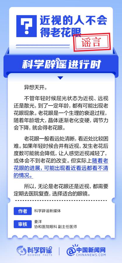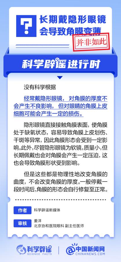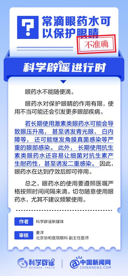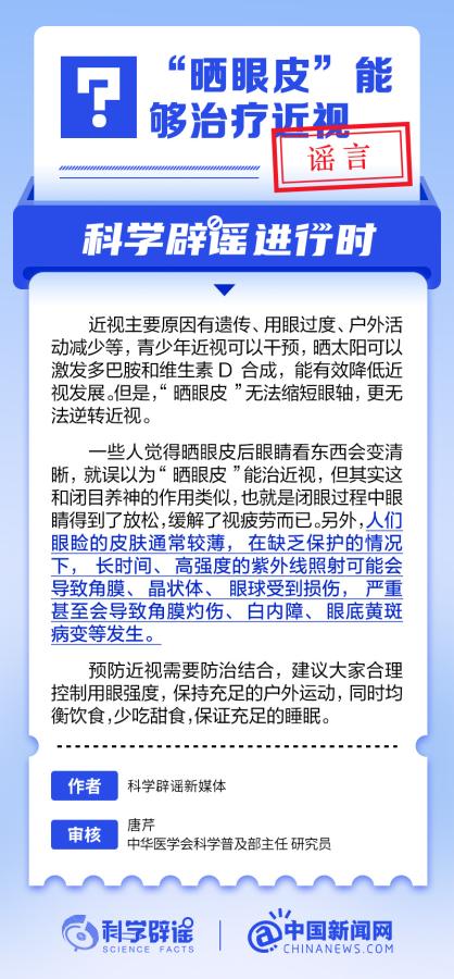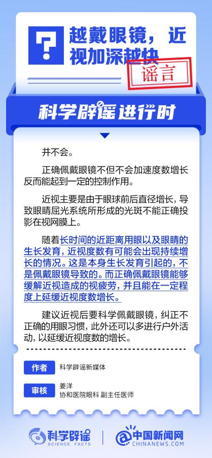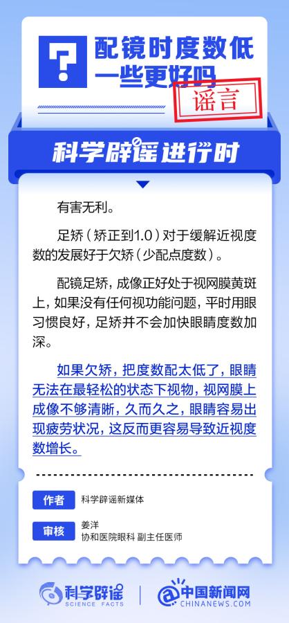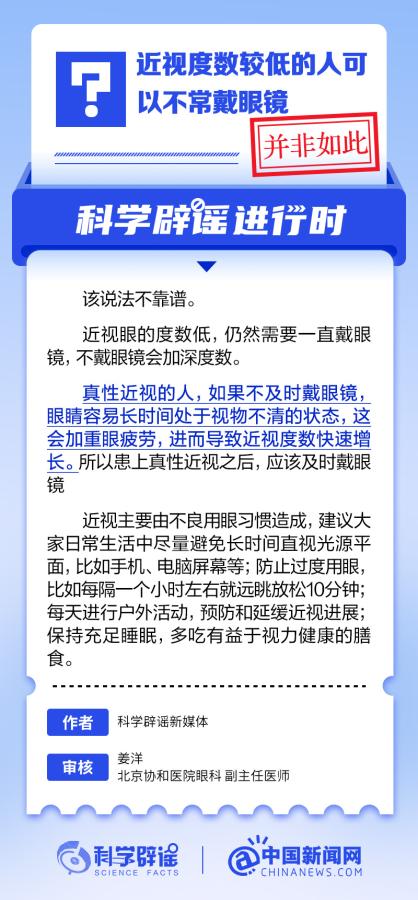 中新網(wǎng)6月6日電 6月6日是全國愛眼日。隨著大家越來越重視護眼,人們開始自發(fā)地從網(wǎng)上查找一些護眼知識,與此同時,網(wǎng)上也出現(xiàn)了很多的護眼誤區(qū)。有哪些常見的所謂“護眼知識”其實是誤區(qū)?眼鏡度數(shù)配高點好還是配低點好?詳情↓ (來源:@科學(xué)辟謠 中國新聞網(wǎng)微博)