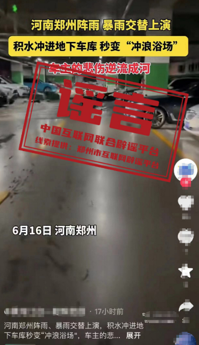 謠言:河南鄭州積水沖進(jìn)地下車庫?