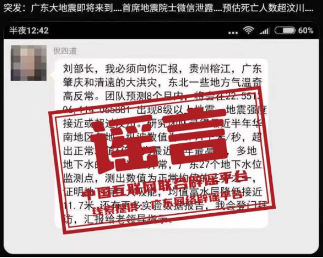 辟謠:網(wǎng)傳院士預(yù)測(cè)廣東將發(fā)生8級(jí)以上大地震?謠言!已報(bào)警