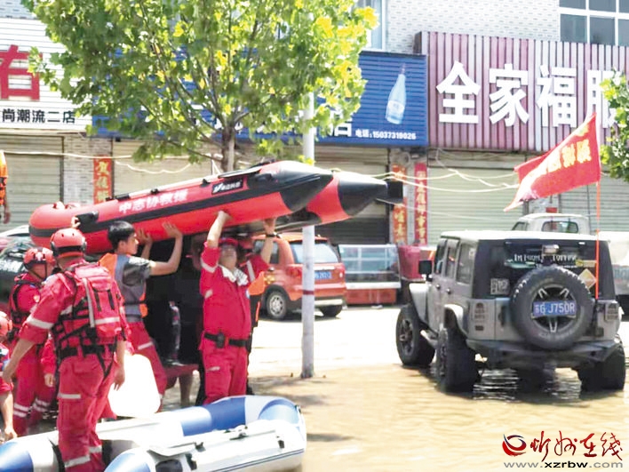 為完成好這次救援任務(wù),該服務(wù)隊準備了救生衣、救生圈、發(fā)電機、迷霧機、救援繩、急救箱、防疫物品等充足的保障物資。24日一早,服務(wù)隊抵達鄭州,之后他們在主管部門統(tǒng)一指揮下展開積極救援。 (王國棟 張蓉 攝影報道)