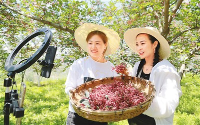 今年,甘肅省隴南市武都區(qū)的百萬畝花椒喜獲豐收,隴南市相關(guān)部門及時(shí)組織本土電商人才深入田間地頭,通過電商平臺和直播帶貨方式助農(nóng)銷售。圖為日前,網(wǎng)絡(luò)主播在武都區(qū)郭河鄉(xiāng)候家彎村利用智能手機(jī)直播推介花椒。李旭春攝(人民視覺)