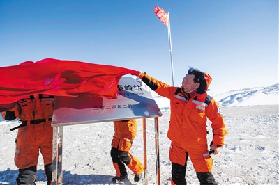 2月7日在中國南極秦嶺站拍攝的揭牌儀式。新華社記者 周圓 攝