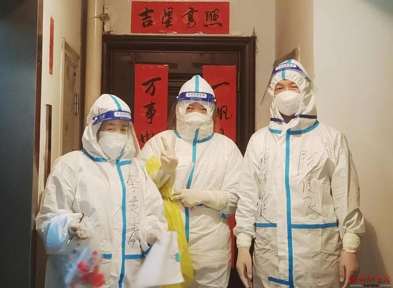 “請(qǐng)大家保持2米距離!”15日早上6時(shí),阮傳飛準(zhǔn)時(shí)來到興檀社區(qū)光明小區(qū)核酸檢測(cè)點(diǎn),主動(dòng)承擔(dān)起維護(hù)核酸檢測(cè)秩序和后勤保障等工作。核酸檢測(cè)結(jié)束后,他馬上協(xié)助社區(qū)網(wǎng)格員、志愿者做好其他防疫工作……護(hù)目鏡上逐漸彌漫開了一層厚厚的水霧,身上也因?yàn)槌龊苟行╇y受,“我只要想到身邊還有無數(shù)‘疫’線戰(zhàn)友,就感覺特別有力量”。完成一天的工作后已是天黑,但能參與到疫情一線工作,他很自豪,作為一名在忻州工作生活了20多年的安徽人,阮傳飛早已把這里當(dāng)作了他的第二個(gè)家鄉(xiāng)。
