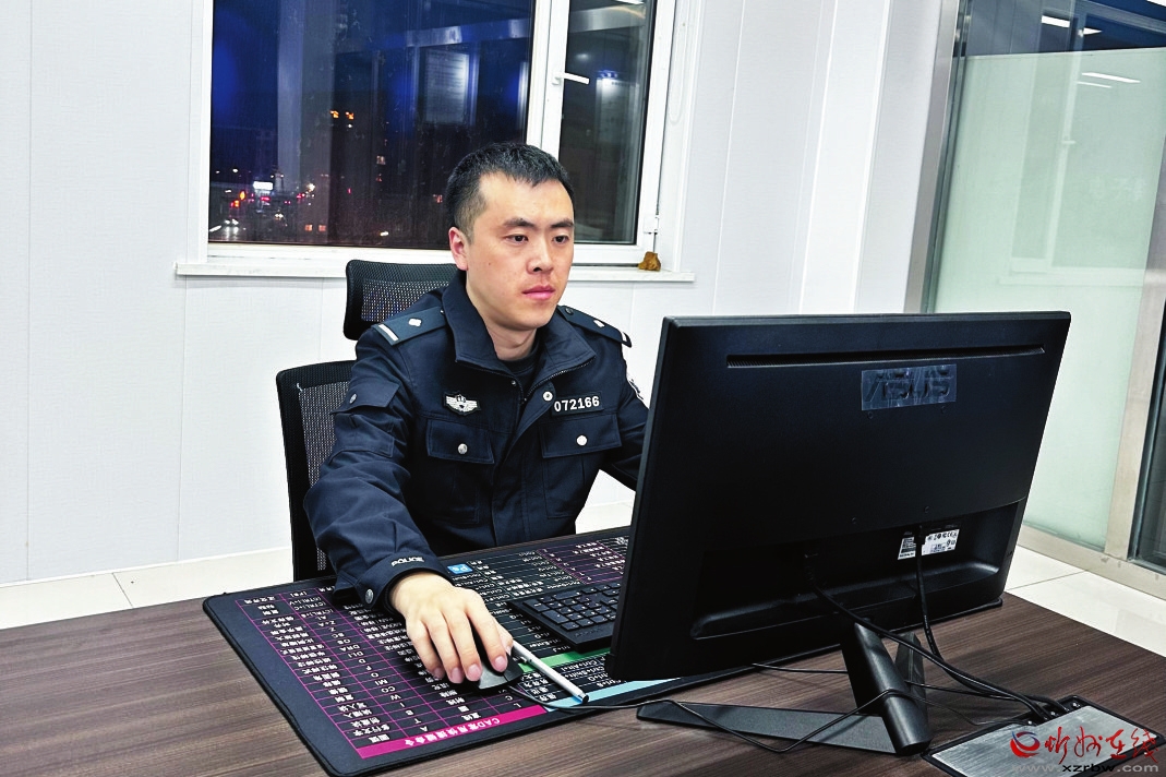 馬利君的從警生涯雖然不長,但他經(jīng)歷的艱險(xiǎn)、考驗(yàn)和面對的挑戰(zhàn)卻是很多人一生都不曾遇到的。他用不懈努力、滾石爬坡的昂揚(yáng)斗志抒寫著自己的警察故事。圖為馬利君在工作中。 (赫在榮)