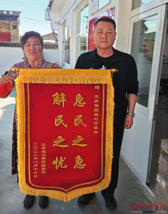 村民路愛平介紹說,去年8月9日,岢嵐縣遭遇到了幾十年不遇的特大暴雨侵襲,凌晨4點(diǎn)多,外出辦事的甄繼榮趕回村里,召集村兩委班子成員連夜巡查村民房屋是否有安全隱患,巡查到早上7點(diǎn)時(shí),發(fā)現(xiàn)靠近河道居住的路愛平和吳貴生兩戶村民的護(hù)坡有被洪水沖刷的痕跡,存在安全隱患,當(dāng)時(shí)還在下著大雨,村里也沒有工程機(jī)械,無奈之下,甄書記及時(shí)聯(lián)系了駐地部隊(duì)的勤務(wù)站,懇請(qǐng)出動(dòng)一臺(tái)大型挖掘機(jī)救援。經(jīng)過部隊(duì)官兵3個(gè)小時(shí)奮戰(zhàn),挖出新的排洪渠道,臨時(shí)改變河水流動(dòng)方向,保住了村民的住房,并及時(shí)在兩排房屋旁邊擋上防洪沙袋。洪水過后,他又積極爭(zhēng)取資金,在鄉(xiāng)政府的支持下,團(tuán)城村修建了200米的護(hù)堤壩,加固了護(hù)坡。事后,村民路愛平到村委會(huì)送上了錦旗。