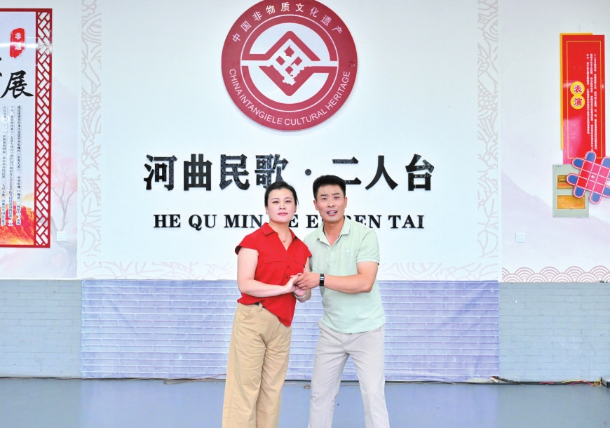 走進(jìn)河曲縣白樸公園,一段清亮婉轉(zhuǎn)的唱腔便隨風(fēng)入耳——河曲縣民歌二人臺藝術(shù)團(tuán)演員鄔光正和同事們?nèi)橥度?,打磨大型非遺音樂劇《大河長歌》。他額角滲著細(xì)密的汗珠,當(dāng)唱到“好兒女今日唱長歌,勝過了前輩了不得”時,突然停了下來,對搭檔說:“再來一遍,剛才那口氣沒頂滿。”這份對細(xì)節(jié)的較真,藏著他對二人臺藝術(shù)最樸素也最深厚的敬畏。