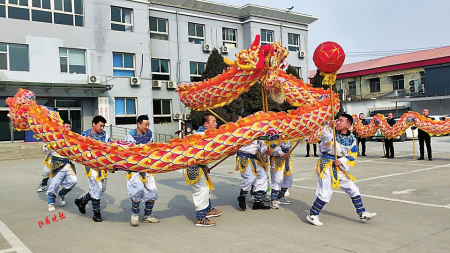“咚咚鏘、咚咚鏘、咚鏘咚鏘咚咚鏘……”2月22日,在太原市小店區(qū)北格鎮(zhèn)東蒲村黨群服務(wù)中心,舞龍表演隊(duì)員身著色彩鮮艷的表演服裝,腰間系著黃藍(lán)相間綢帶,隨著鼓樂的響起,隊(duì)員們高舉祥龍隨著龍珠奔跑。只見兩條龍時(shí)而上下翻騰、左右盤旋,時(shí)而倒地平舞、蜿蜒遨游,隊(duì)員們配合默契,有節(jié)奏地舞動(dòng)著長龍,造型栩栩如生,吸引了眾多村民提前感受元宵節(jié)的氛圍。