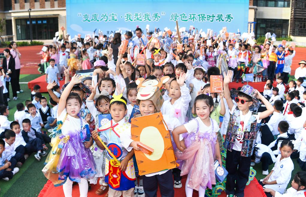 2023年9月,悅容小學舉辦環(huán)保時裝秀活動。新華社發(fā)